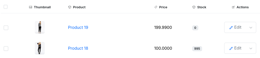 Selecting more than one product or clicking on the top checkbox will show the bulk delete button