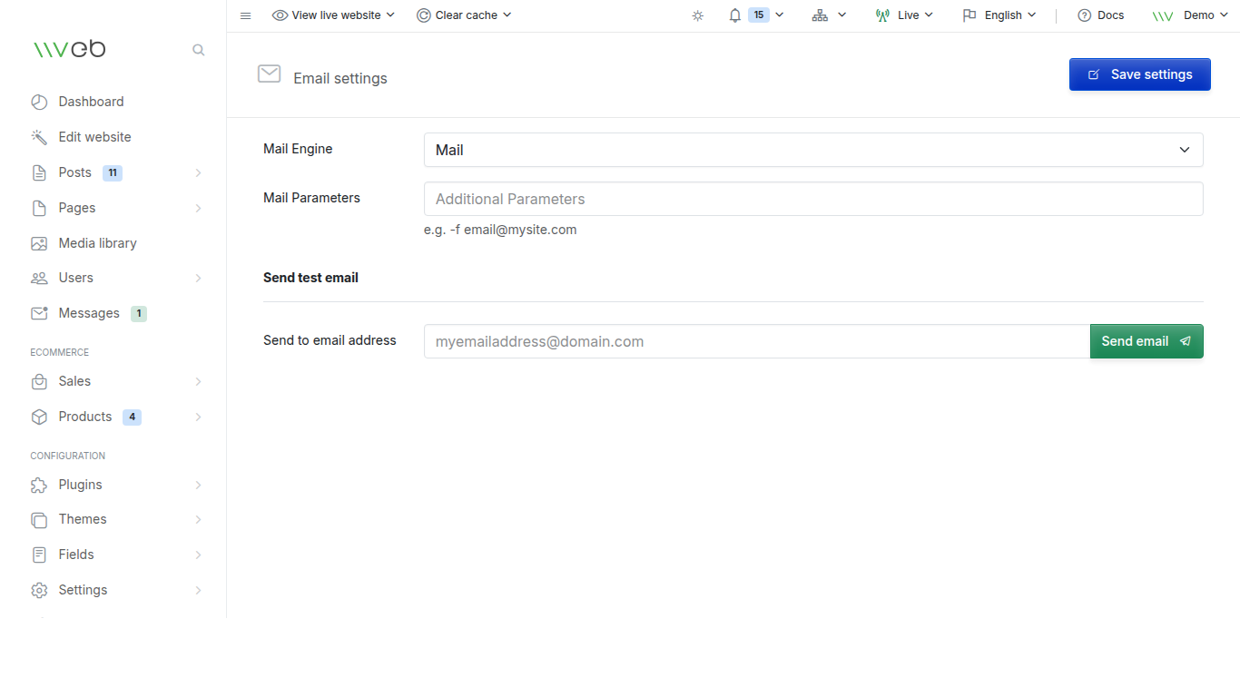 - Mail Protocol: Lets you choose between sending mail to the host's email, or through an SMTP. You should contact your shop's hosting provider to see if configure PHP mail. If not, you need to use a SMTP, such as gmail.