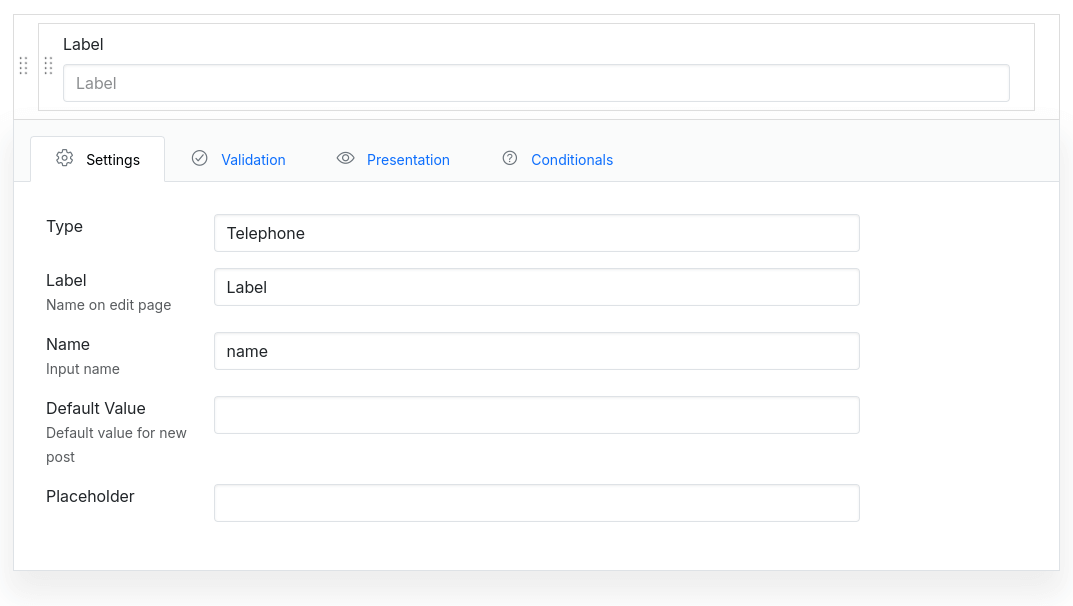 The Tel field creates an tel input, used for storing telephone number values.