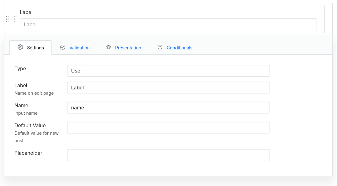 The User field creates an user input, used for choosing and storing an associated user for the post.