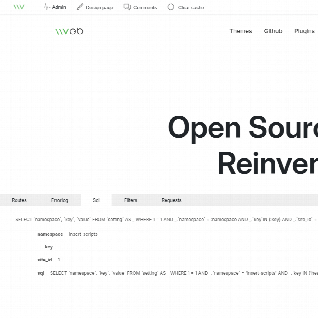 Shows a debug bar on the bottom of the page with sql queries, filters etc